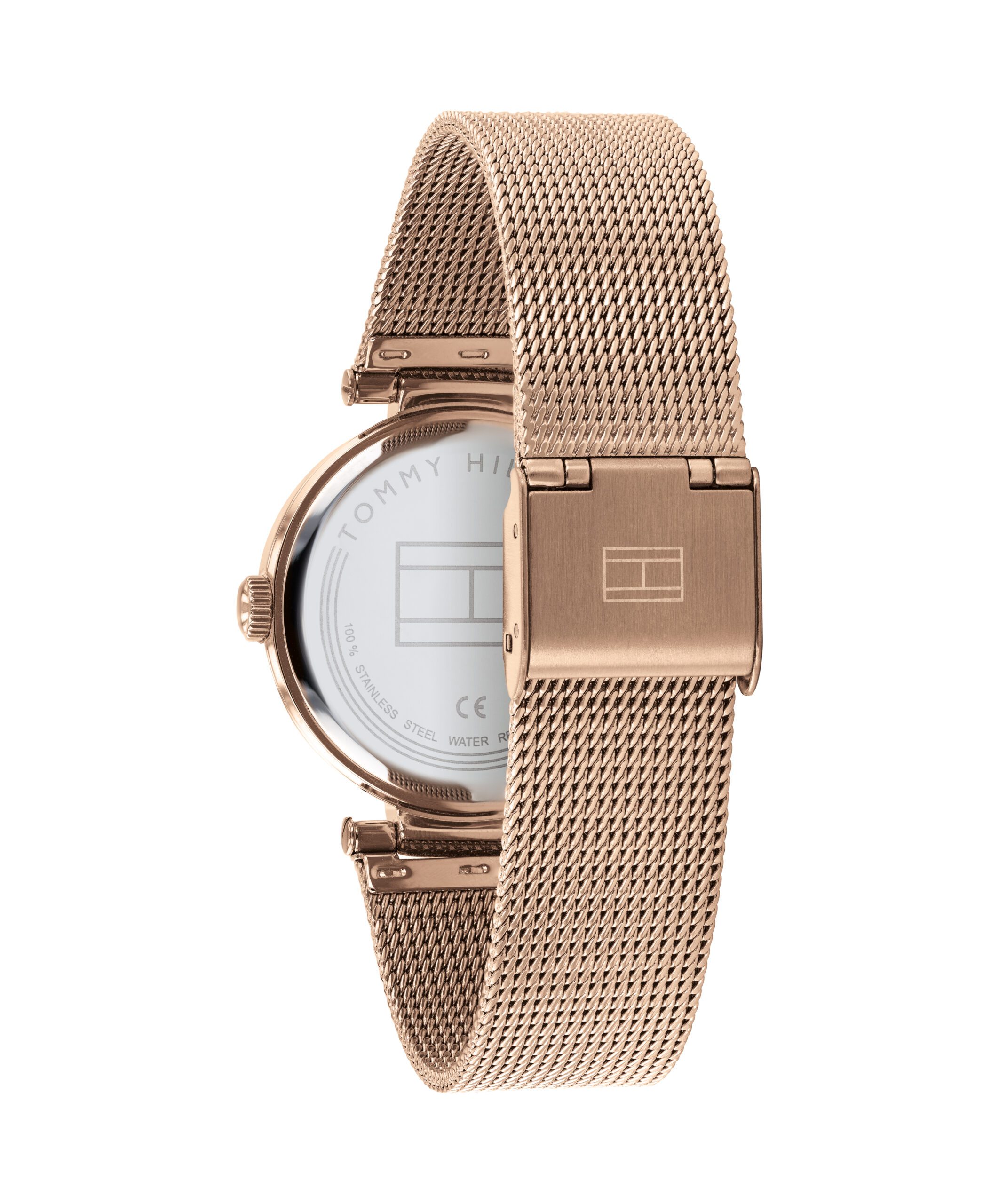 TOMMY HILFIGER WATCH ,LYNN GREY DIAL IP CARNATION GOLD MESH BAND IP CARNATION GO