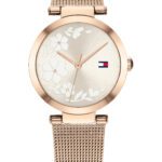 TOMMY HILFIGER WATCH – PIPPA PINK LEATHER STRAP SILVER FLORAL DIAL 1781919